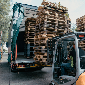 HSR Pallets kan de volgende pallets afhalen (en eventueel na uitsortering en repartie) ook leveren.